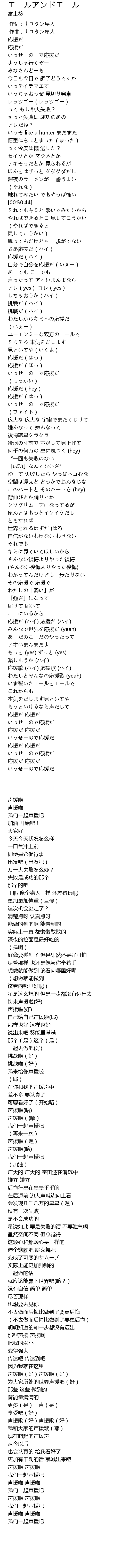 | [02:52.33] | 応援歌 (ハイ) 応援歌 (ハイ) |