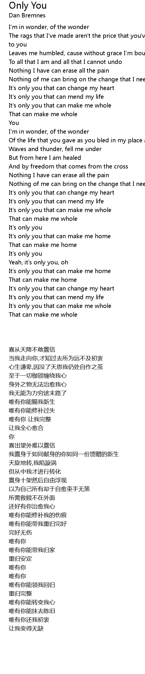 Only You Lyrics