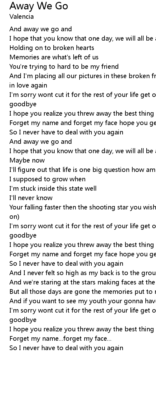 Forget my name and forget my face hope you get on a plane and forget this place |