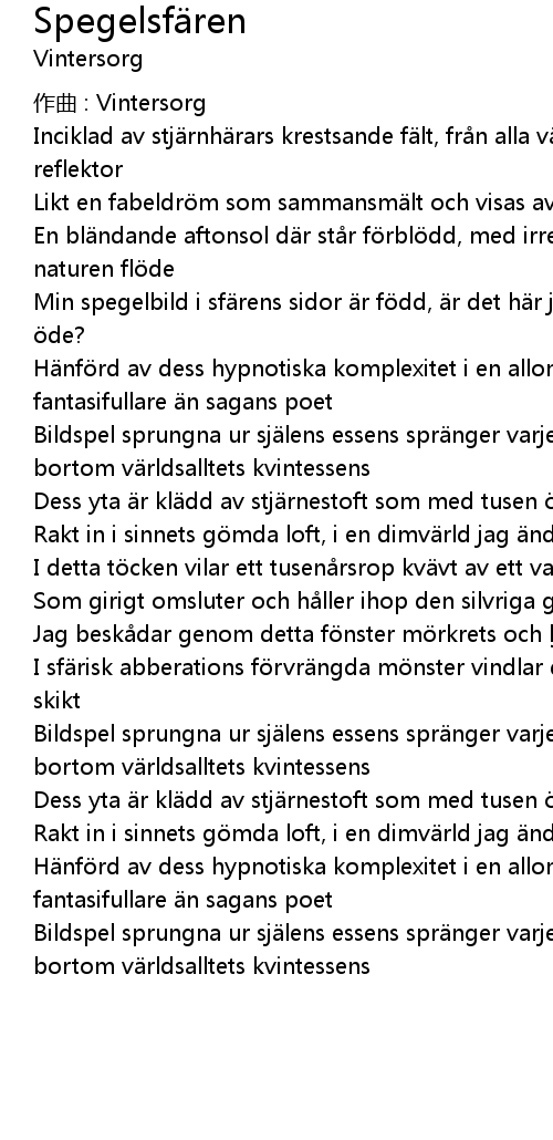 | Min spegelbild i sfärens sidor är född, är det här jag skall finna mitt öde? | |