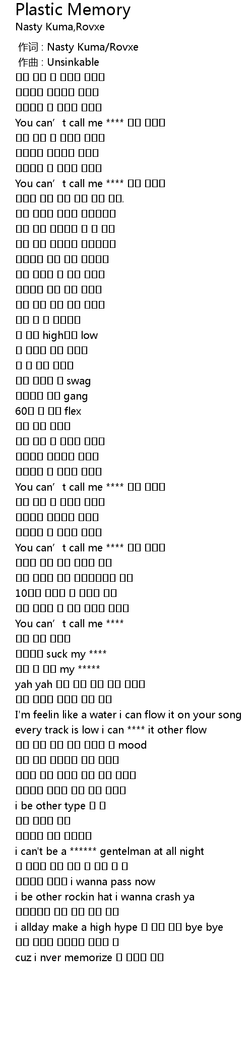 | [00:00.000] | 作词 : Nasty Kuma/Rovxe |