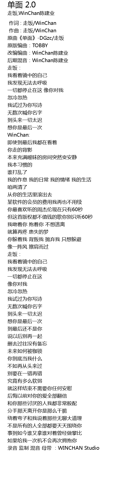 | [02:42.652] | 录音 监制 混音 母带 :WINCHAN Studio |