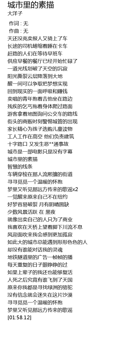 | [00:06.91] | 天还没亮卖报人又骑上了车 |