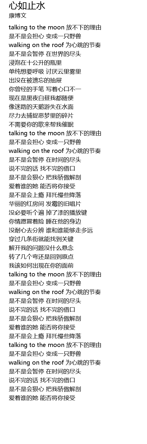 | [00:01.103] | talking to the moon fang bu xia de li you |