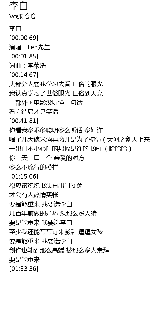 | [00:01.25] | yǎn chàng: Len xiān shēng |