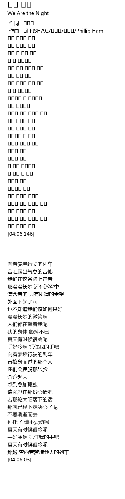 | [00:01.000] | 作曲 : Lil FISH/9z/황성수/김보람/Phillip Ham |