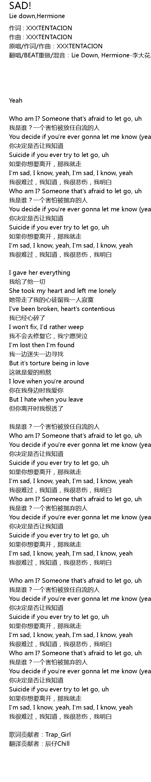 | I'm sad, I know, yeah, I'm sad, I know, yeah | |