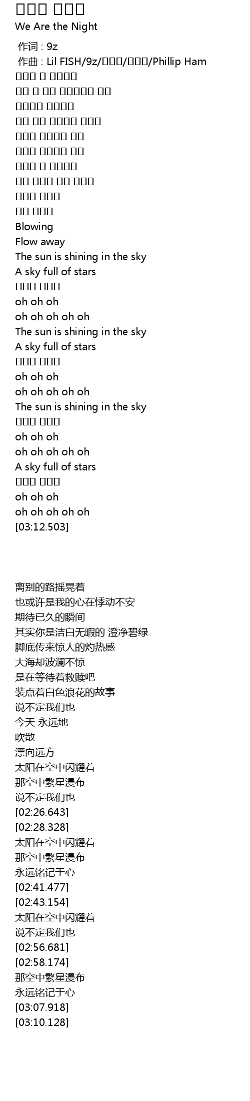 | [00:01.000] | 作曲 : Lil FISH/9z/황성수/김보람/Phillip Ham |