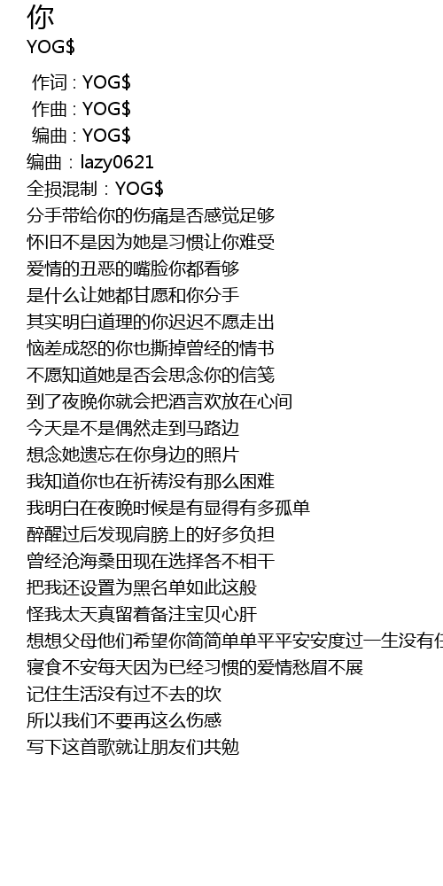 | [00:00.600] | 编曲 : YOG$ |