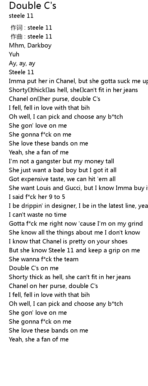 | [00:17.694] | Imma put her in Chanel, but she gotta suck me up |