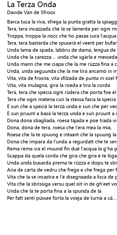 | Unda, unda seguunda che la me tira ancamo in mezz al laagh | |