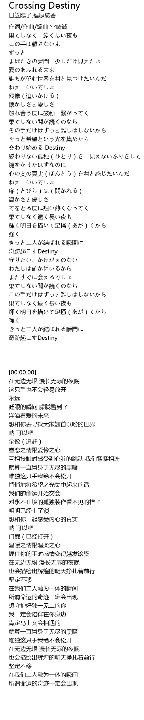 | [01:15.40] | 交わり始める Destiny |