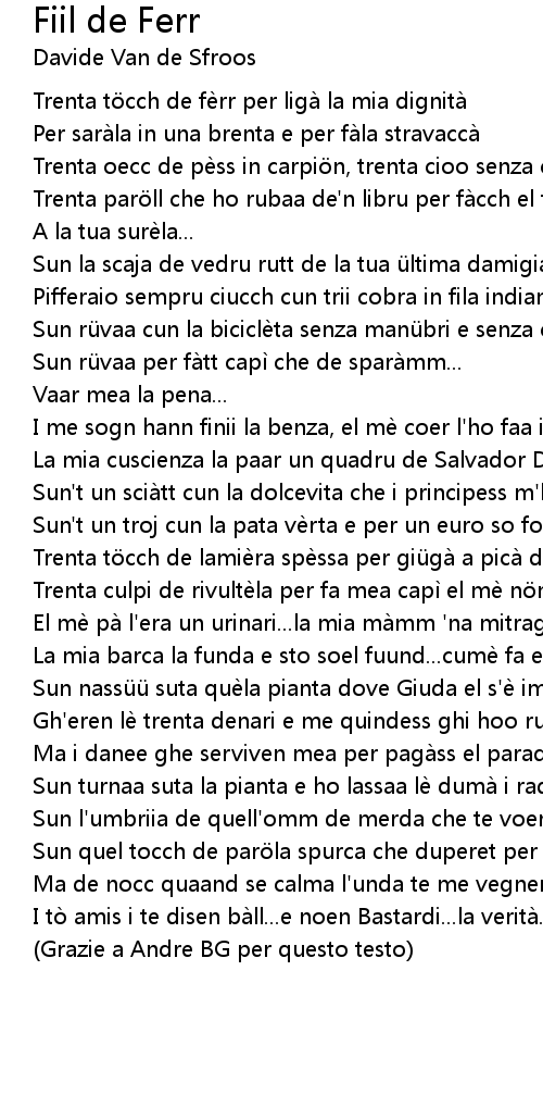 | Sun l' umbriia de quell' omm de merda che te voeret mea diventa, | |