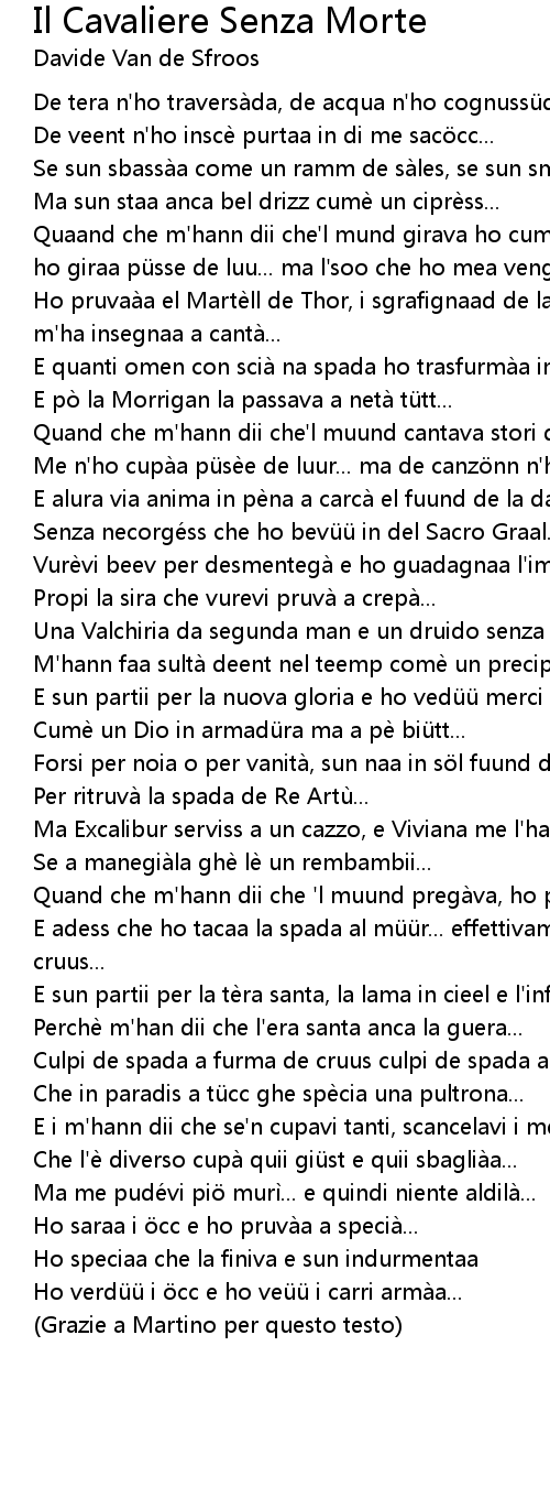 | Quand che m'hann dii che'l muund cantava stori de Achille e de Cuchulain | |