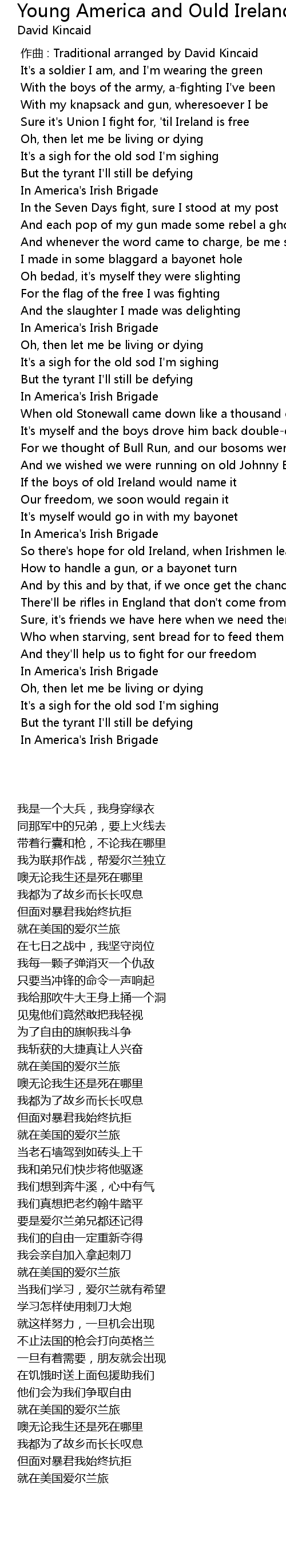 | [00:27.478] | Sure it' s Union I fight for, ' til Ireland is free |