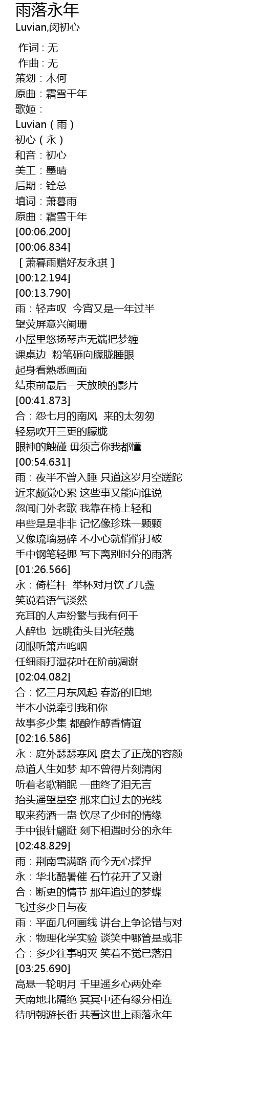 | [00:02.210] | yuán qǔ: shuāng xuě qiān nián |