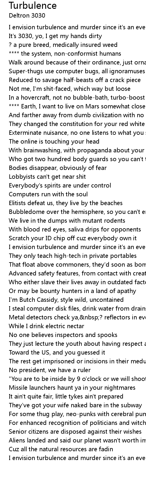 I envision turbulence and murder since it's an everyday occurrence (3x) |