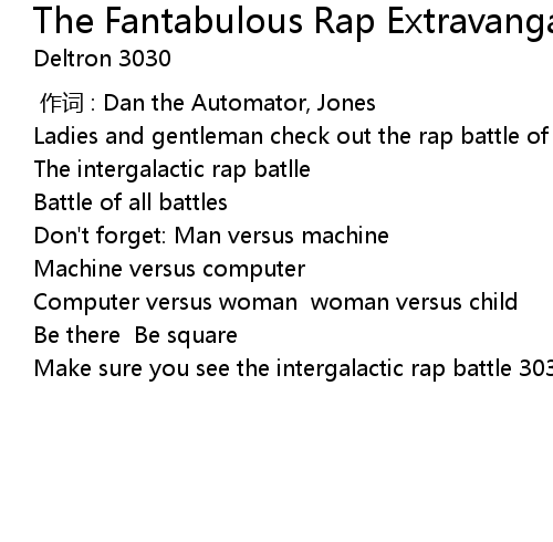 | [00:17.59] | Make sure you see the intergalactic rap battle 3030 |