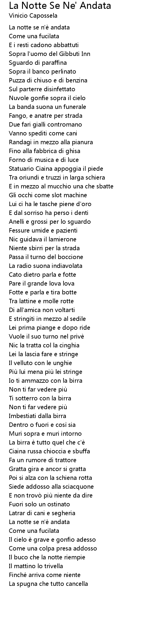 | La notte se n'e andata | |