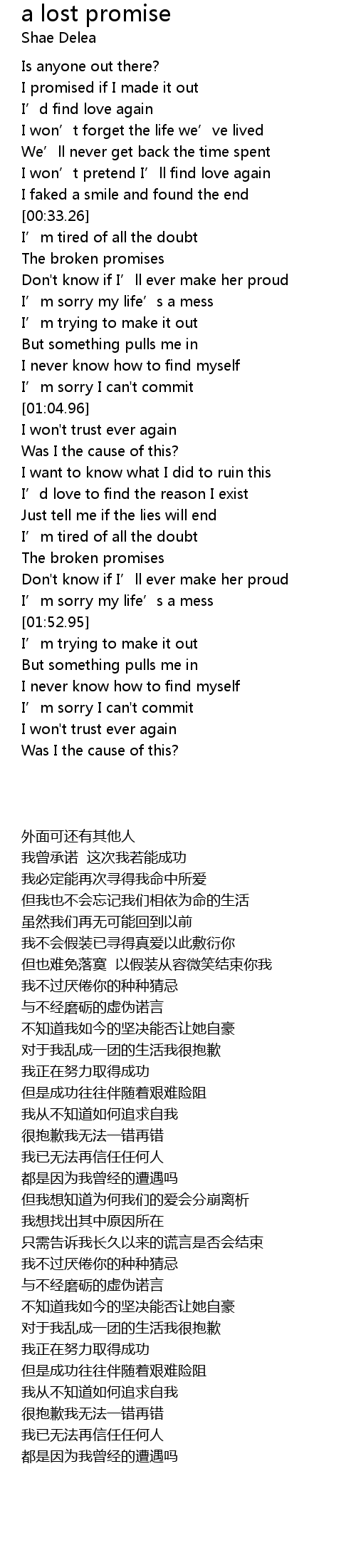 | [00:43.23] | Don't know if I’ll ever make her proud |
