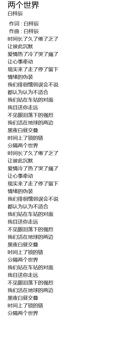 | [00:00.000] | 作词 : 白梓辰 |