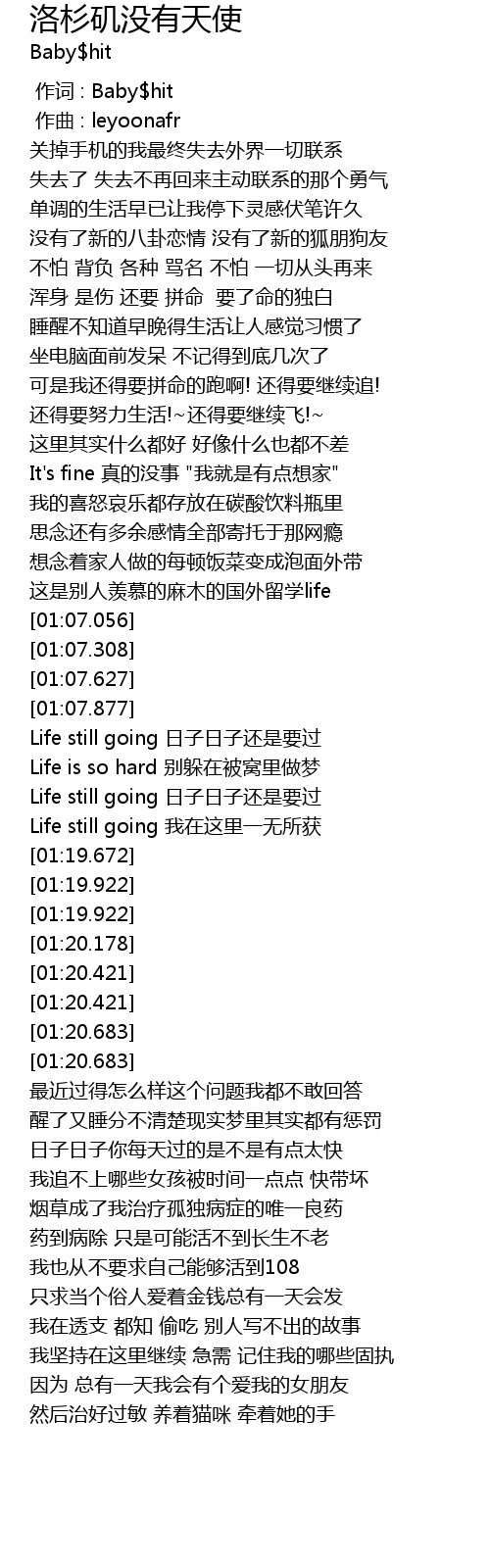 | [01:17.912] | Life still going 我在这里一无所获 |