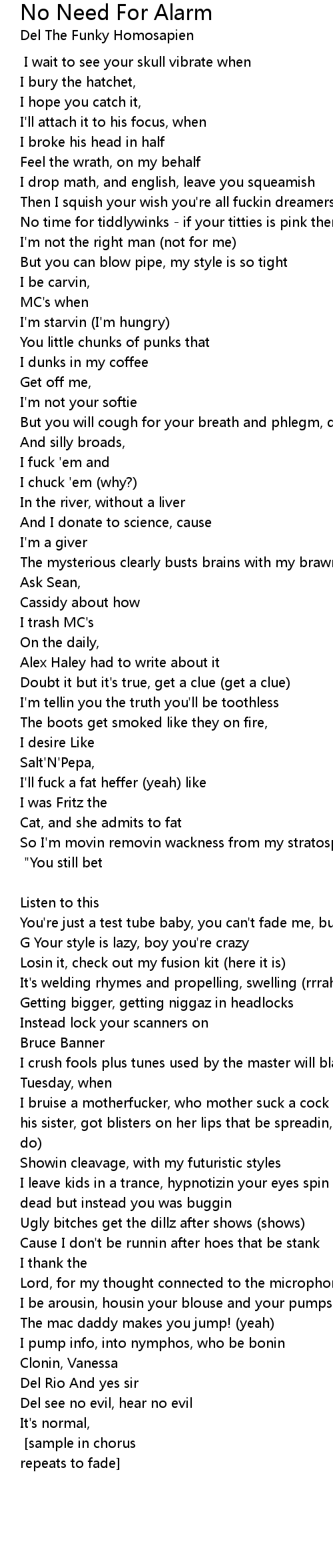 If I thought that that was near [CHORUS: repeat 4X w/ variations] "You still bet that you can harm me, but you don't alarm me.." [Del] |