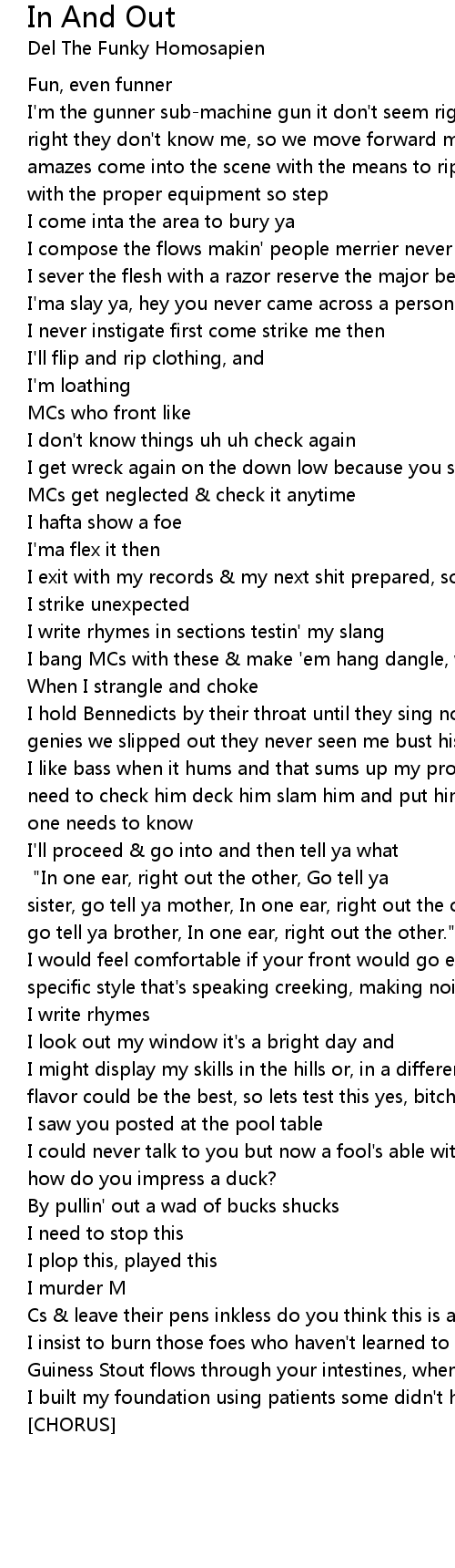 I'm the gunner sub-machine gun it don't seem right, that they don't get my theme right they don't know me, so we move forward more words & phrases my style amazes come into the scene with the means to rip shit my brain's power packed with the proper equipment so step |