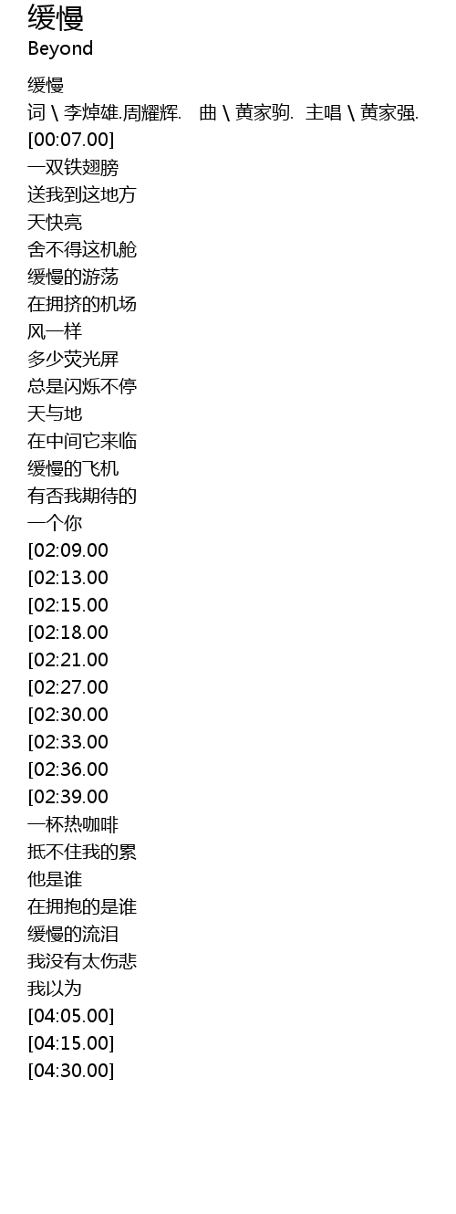 | [00:04.00] | 词 \ 李焯雄.周耀辉. 曲 \ 黄家驹. 主唱 \ 黄家强. |
