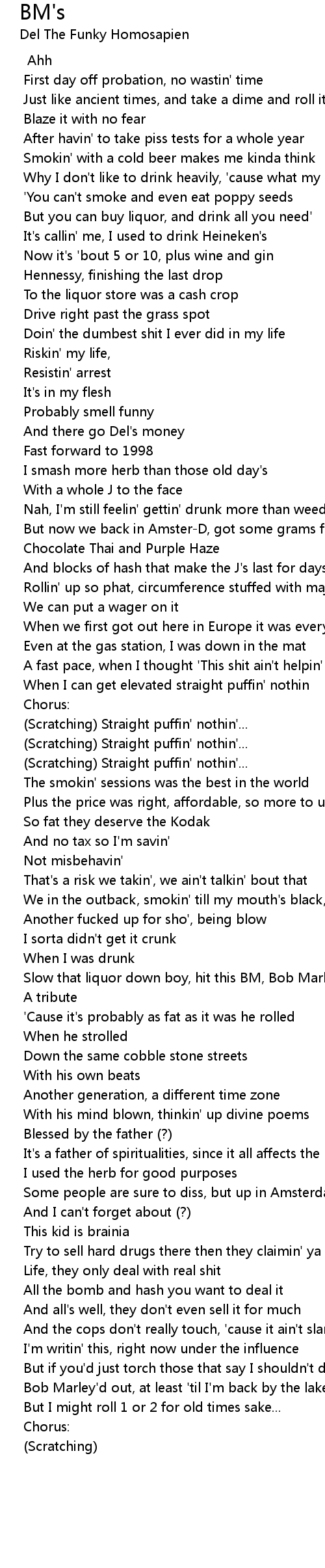 Slow that liquor down boy, hit this BM, Bob Marley |