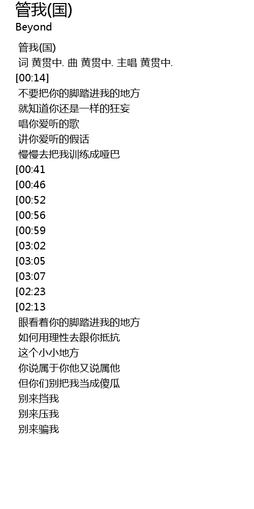 | [03:11][03:02][02:15][02:04][01:02] | nǐ bié bié guǎn wǒ |