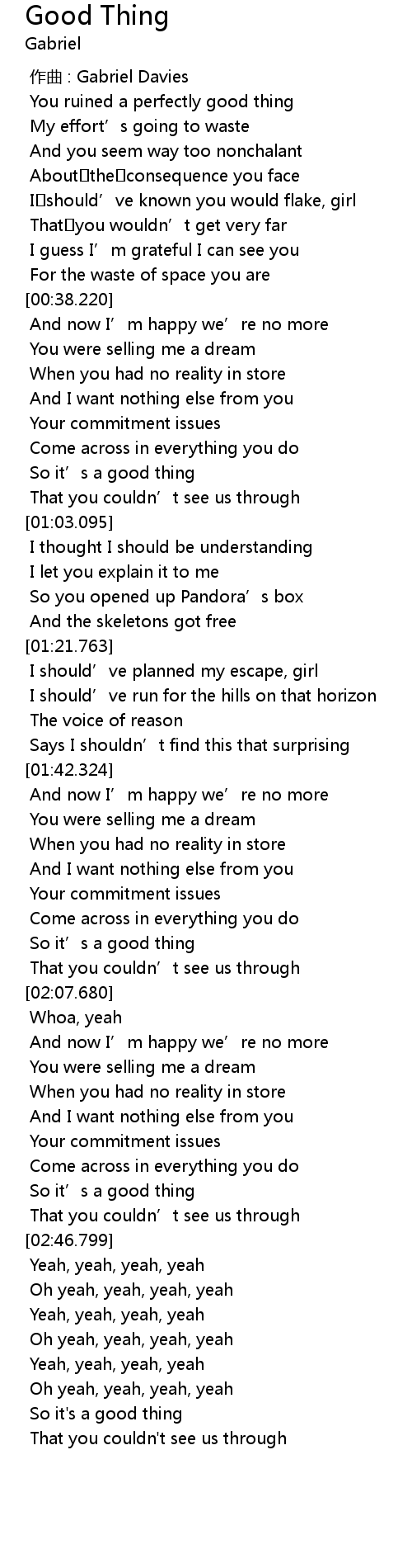 | [00:38.334] | And now I’m happy we’re no more |