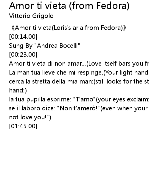 | [00:24.00] | Amor ti vieta di non amar...(Love itself bars you from not loving...) |