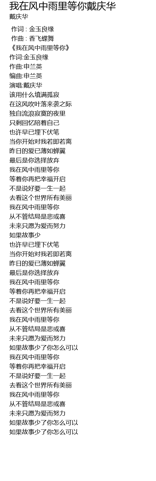 | [04:37.41] | wǒ zài fēng zhōng yǔ lǐ děng nǐ |