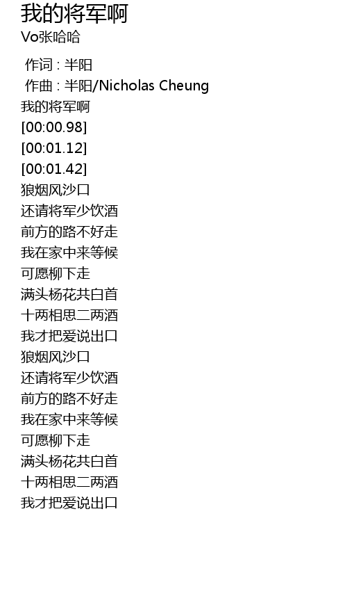 | [00:00.25] | 我的将军啊 |