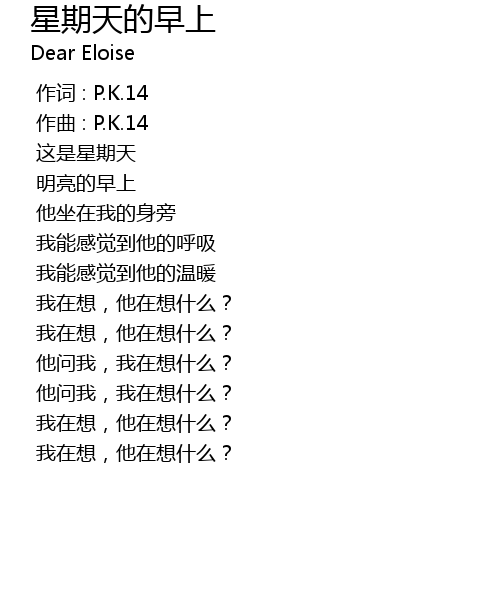 | [00:01.000] | zuò qǔ : P. K. 14 |