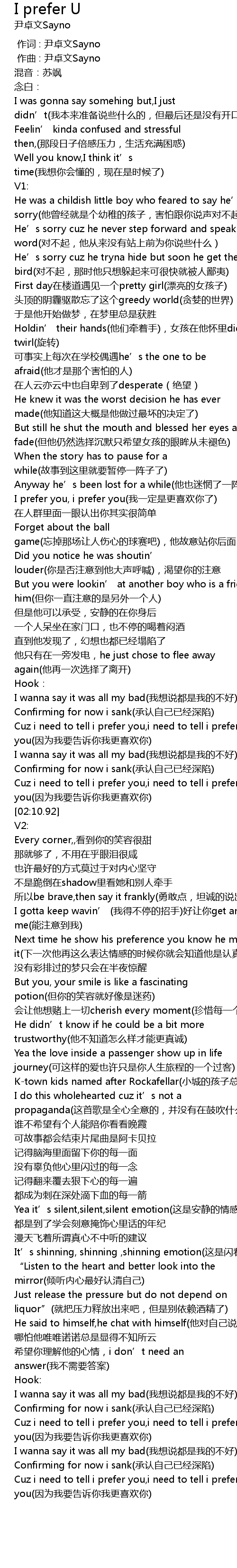 | [01:55.00] | Cuz i need to tell i prefer you,i need to tell i prefer you(因为我要告诉你我更喜欢你) |