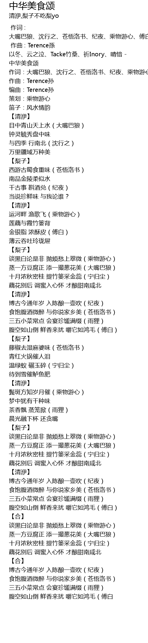 | [00:09.340] | 以冬、云之泣、Tacke竹桑、祈Inory、晴愔 - 中华美食颂 |