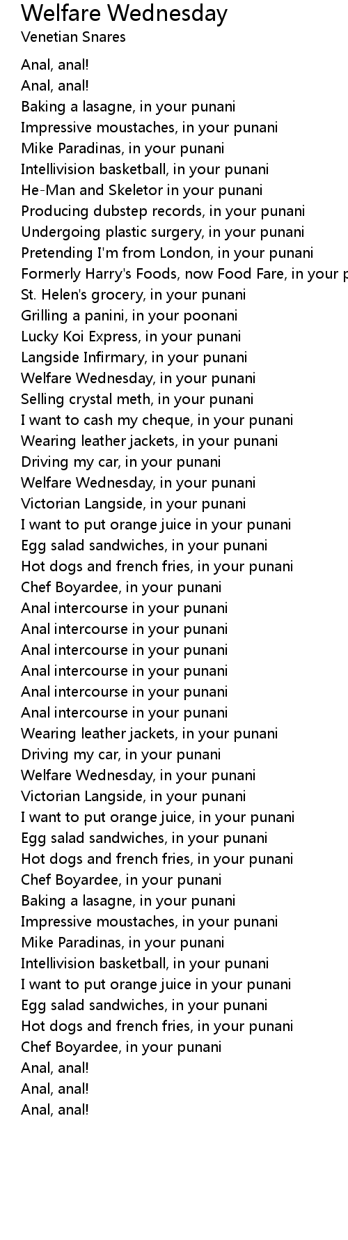 Welfare Wednesday, in your punani |