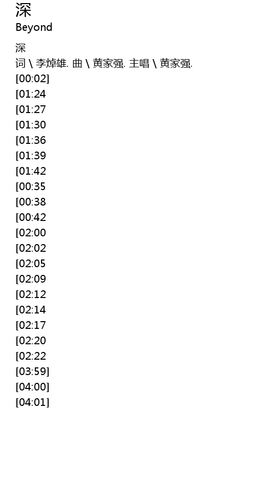 | [00:01] | 词 \ 李焯雄. 曲 \ 黄家强. 主唱 \ 黄家强. |