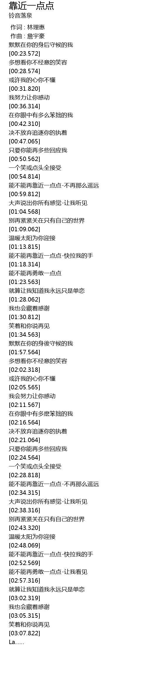 | [02:29.568] | neng bu neng zai kao jin yi dian dian bu zai na me yao yuan |