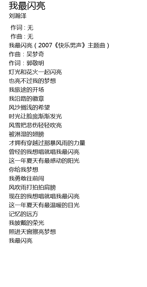 | [00:00.946] | 我最闪亮(2007《快乐男声》主题曲) |