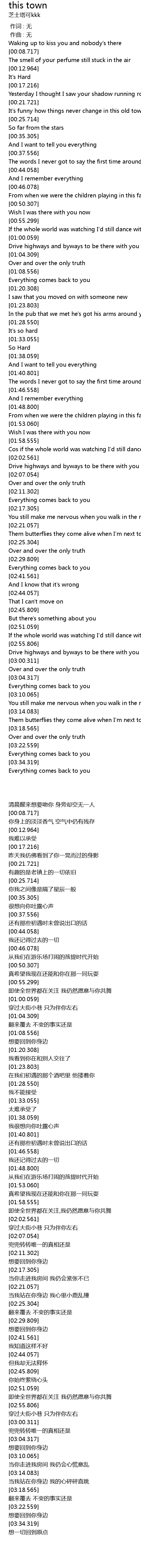 | [00:04.722] | Waking up to kiss you and nobody' s there |