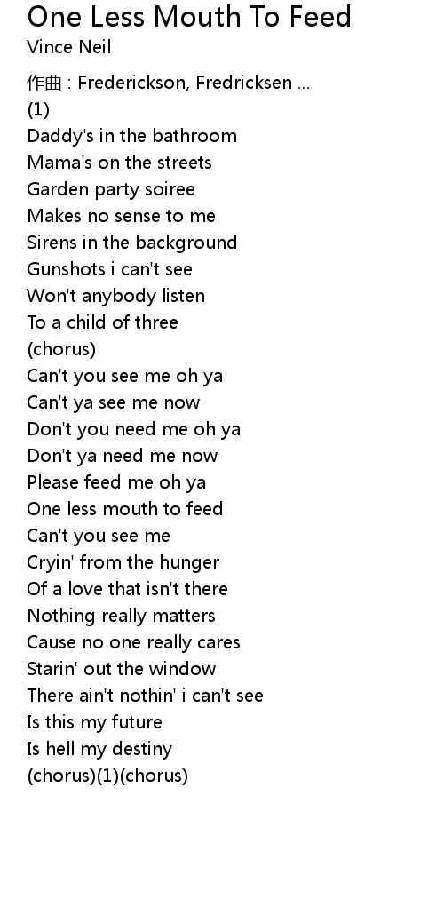 | Song | One Less Mouth To Feed |