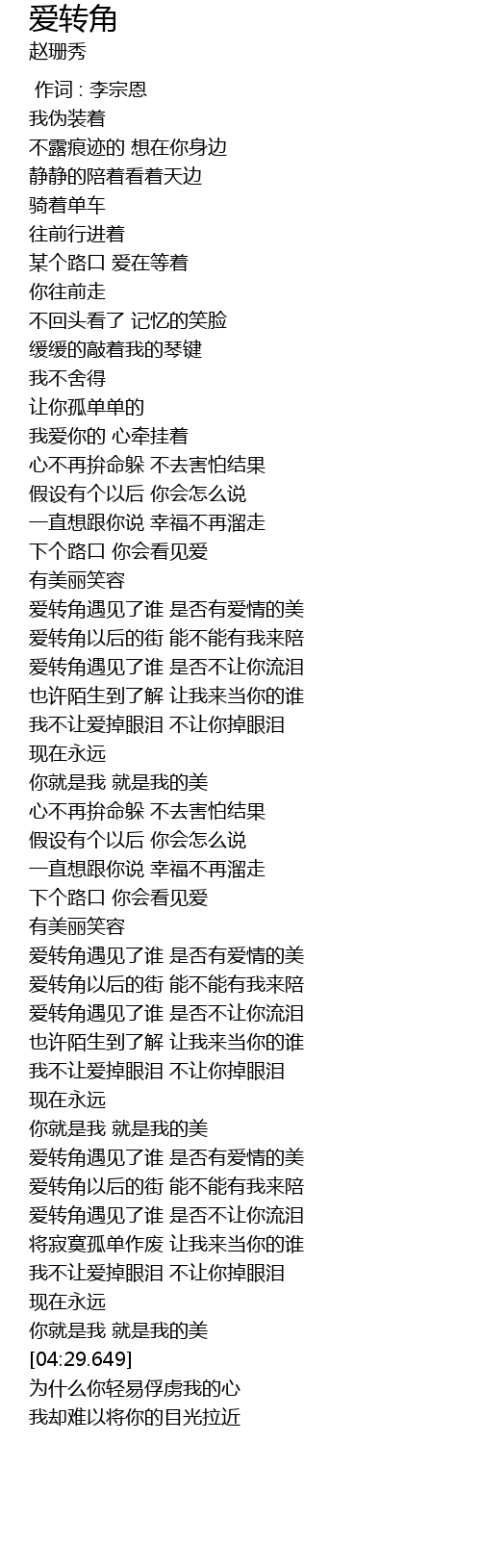| [04:01.147] | 爱转角遇见了谁 是否不让你流泪 |