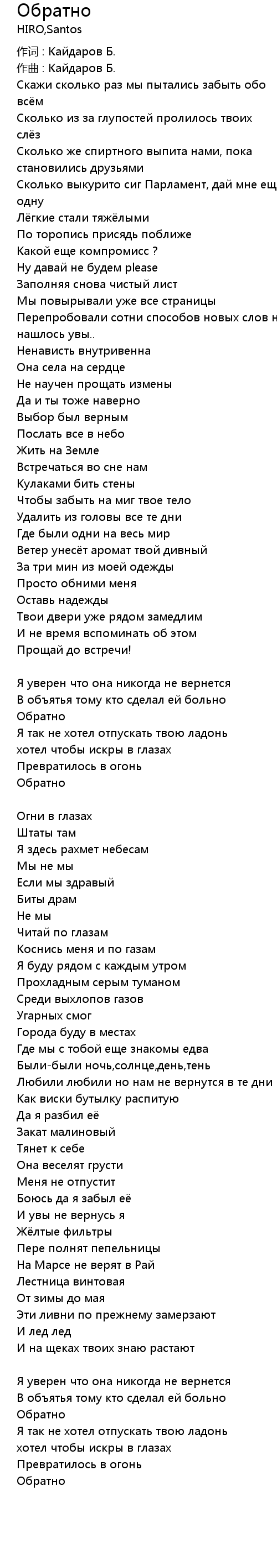 Обратно  Lyrics