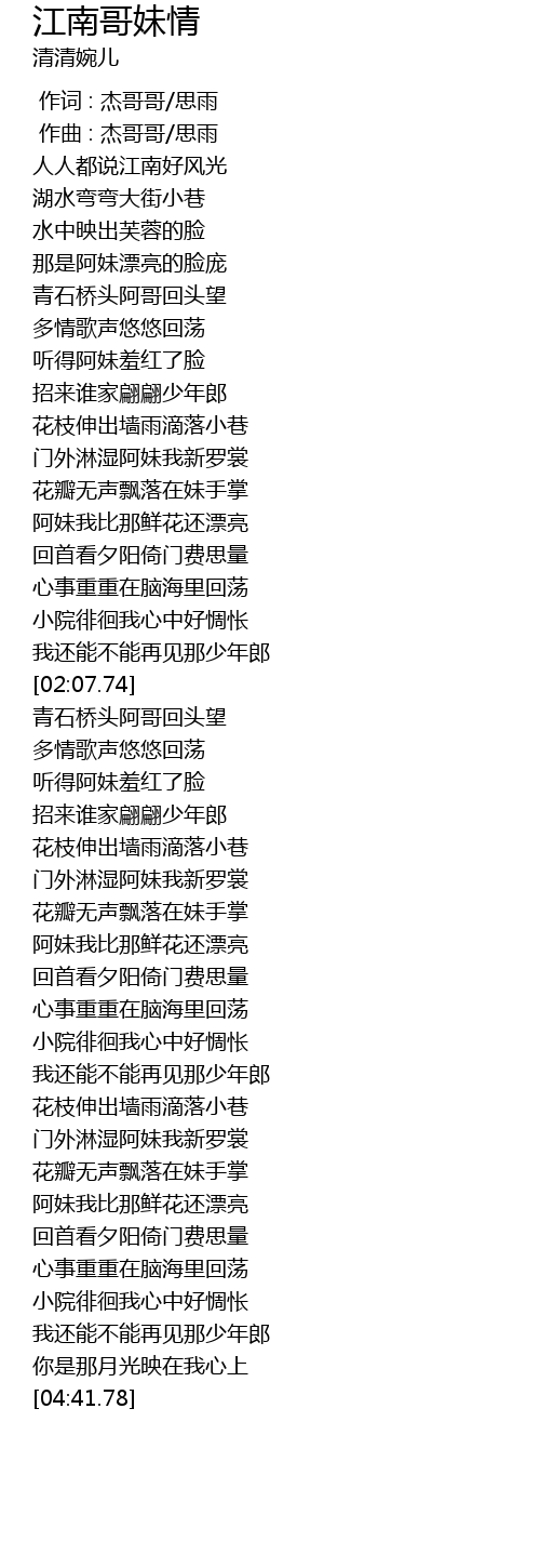 | [00:00.00] | 作词 : 杰哥哥/思雨 |