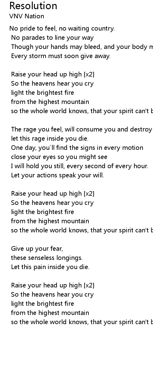 | Raise your head up high [x2] | |