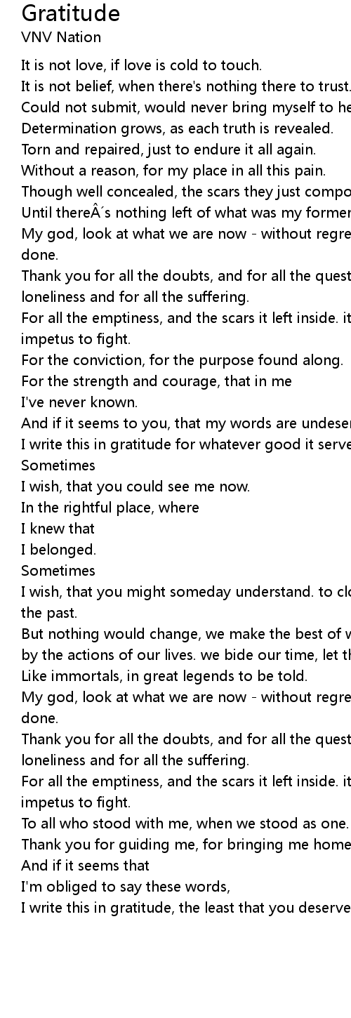 | Thank you for all the doubts, and for all the questioning, for all the loneliness and for all the suffering. | |