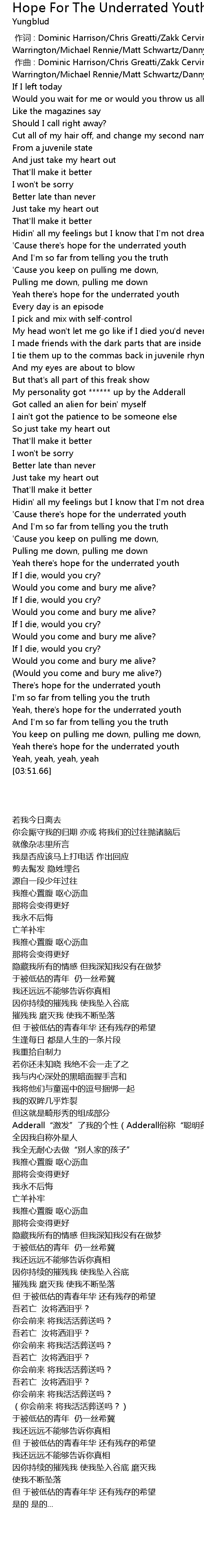 | [03:32.13] | Yeah there's hope for the underrated youth |